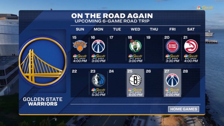 3月14日讯 今天上午10:00,勇士主场迎战森林狼。转播方晒出本场过后勇士的赛程,他们将开启六连客,对手分别为尼克斯、奇才、凯尔特人、活塞、老鹰和独行侠。随后他们将回到主场,迎战篮网和奇才。目前勇士战绩为32胜33负,排名西部第九。